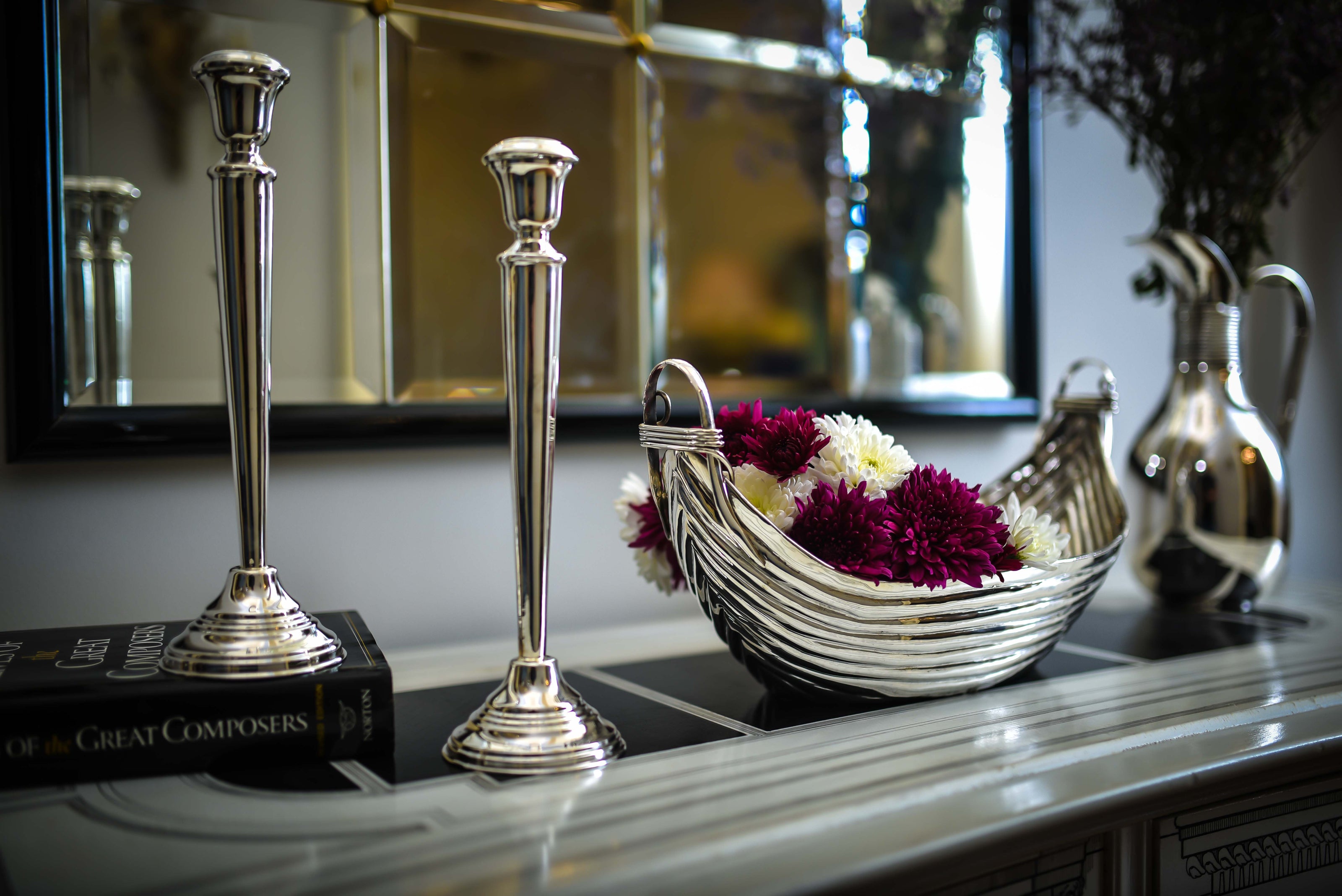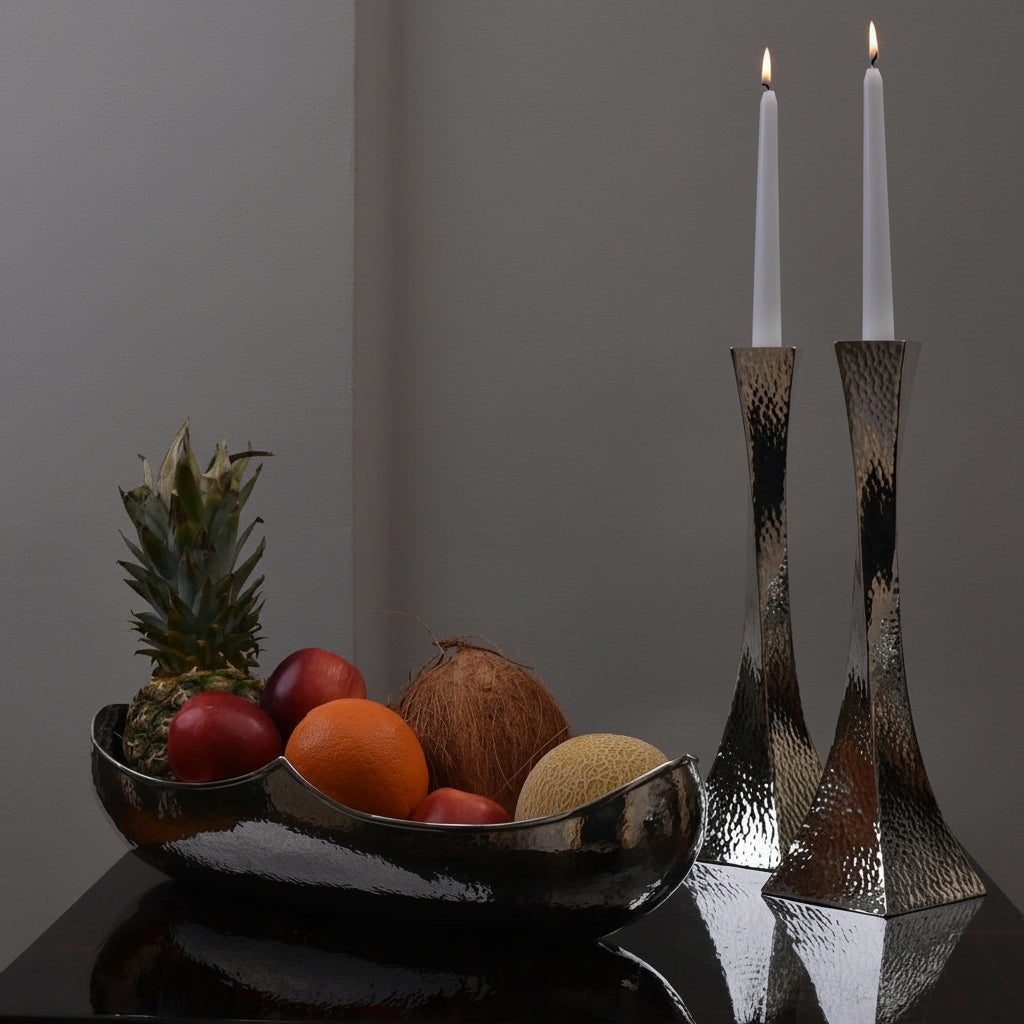 Our handcrafted silver candlesticks bring warmth and elegance to any setting. Perfect for creating a sophisticated table, a cozy ambiance, or as a statement décor piece, each design reflects timeless craftsmanship and artistry.