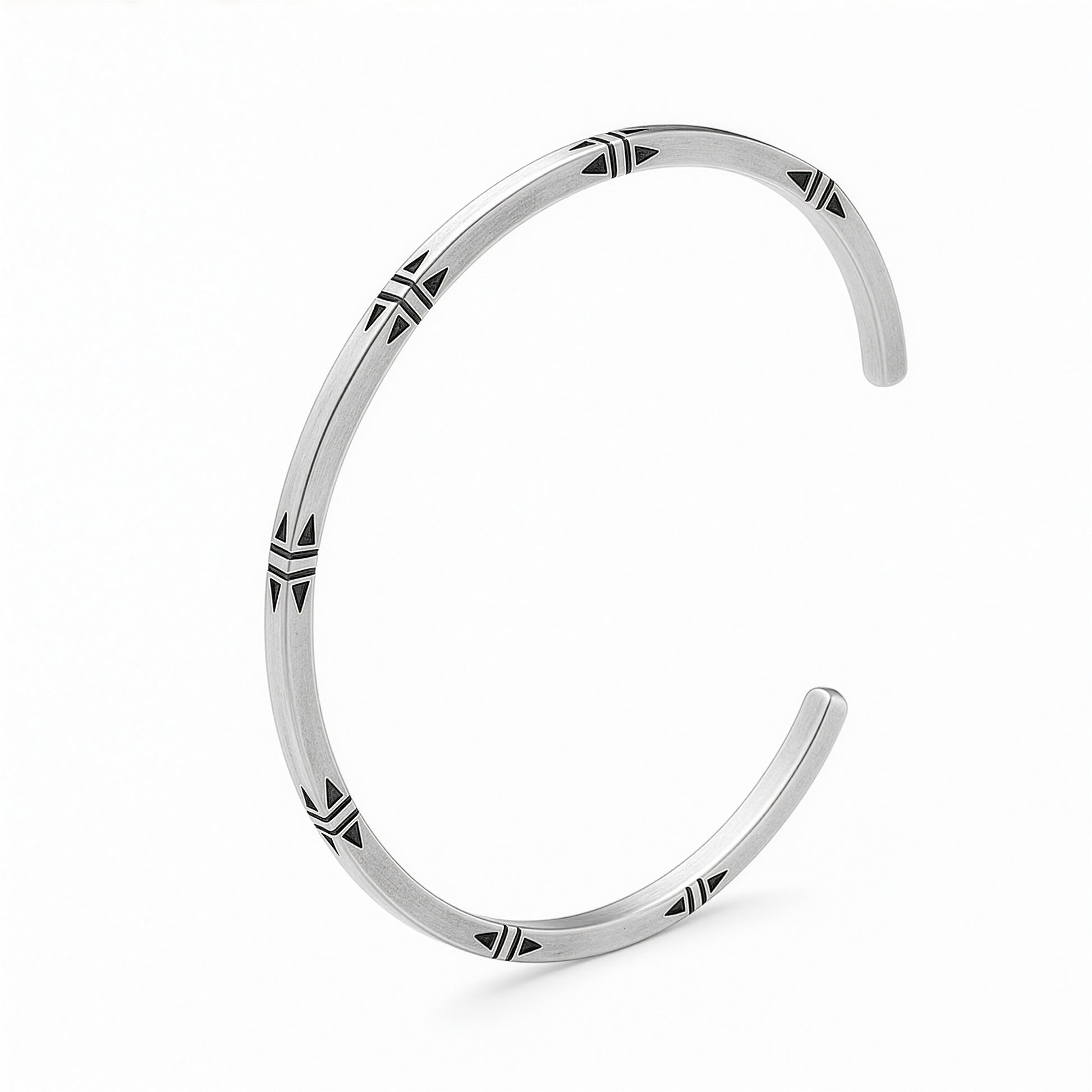 Embrace direction and purpose with this striking 925 silver bangle, adorned with carefully crafted arrow motifs. Each arrow symbolizes forward momentum, intention, and meaningful progress. The polished finish catches light beautifully, while the symbolic design adds depth to your everyday style. Perfect for those who value both aesthetic appeal and personal significance, this bangle serves as a daily reminder to stay focused on your goals. A versatile piece that transitions seamlessly from casual wear to special occasions.