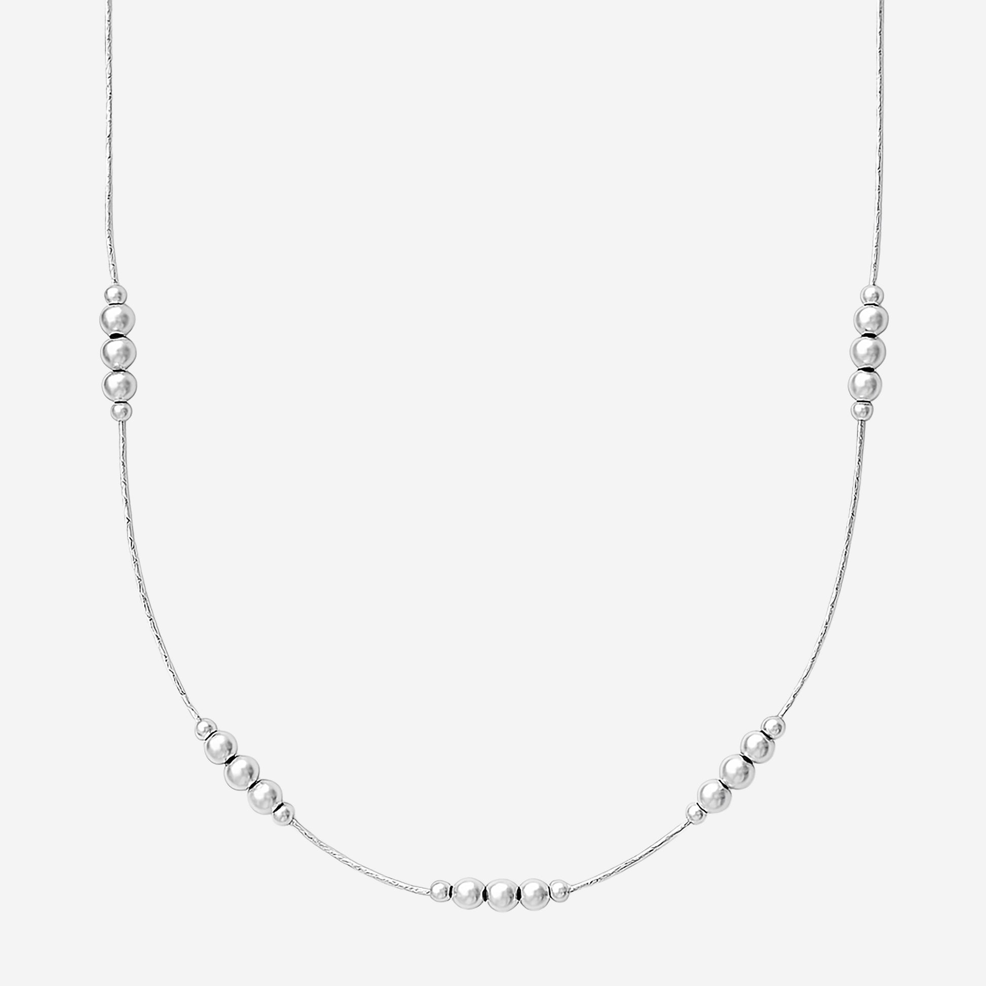 Elevate your everyday style with this striking Spaced Necklace, featuring carefully arranged balls and beads in varying sizes. The rhythmic pattern of grouped elements creates visual interest and movement, making it a versatile piece that complements both casual and refined looks. Crafted with attention to detail, this necklace brings dimension and sophistication to any outfit, whether worn alone or layered with other pieces.