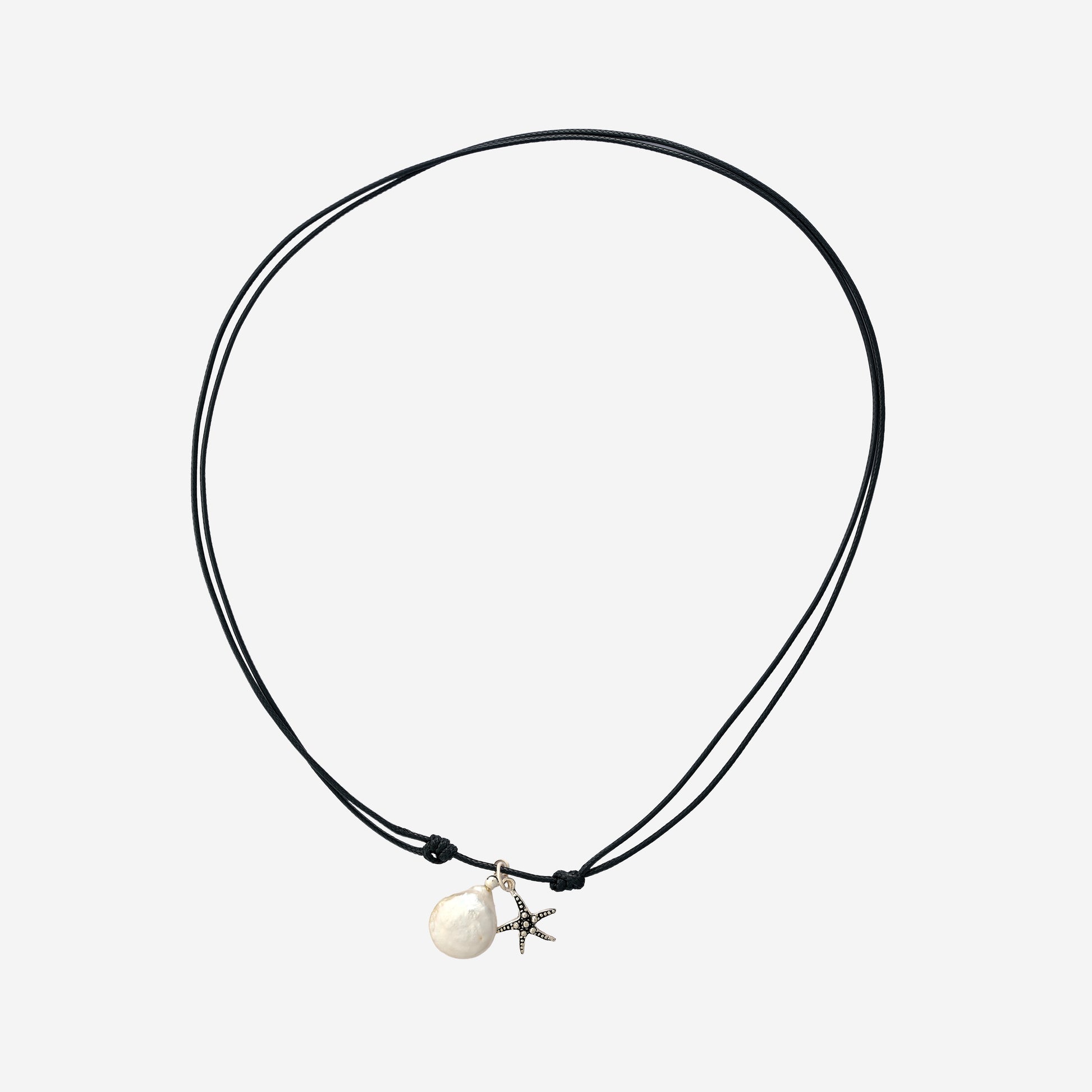 Delicate starfish pendant adorned with a pearl, strung on an adjustable thread necklace that fits any neck size. This charming piece combines coastal elegance with versatile styling, perfect for beach lovers and everyday wear.